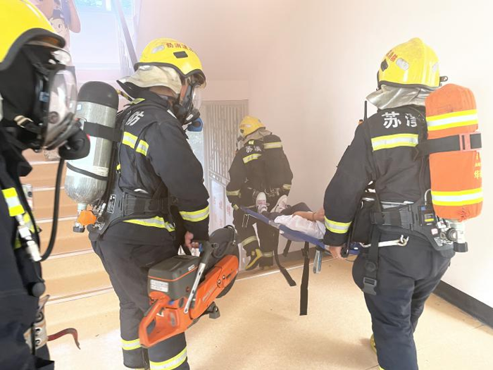 9:35急促的(de)警報(bào)聲打破校(xiào)園的(de)甯靜(jìng),三幢學生(shēng)寝室樓濃煙(yān)四起,廣播播放(fγàng)火(huǒ)災注意事(shì)項,情況十分(fēn)危急。蘇溪消防隊派出兩輛(liàng)消防救援車(chē),現(xiàn)場(chǎngπ)指導,快(kuài)速制(zhì)定撲救方案。在指揮員(yuán)和(hé)疏散引導組老(lǎo)師(shī)的(de)指引下(xi à),學生(shēng)彎著(zhe)腰、貓著(zhe)步,用(yòng)手帕、毛巾等捂住口鼻,沿著(zhe)指定的(de)疏散通(tōng)道(dào)快(kuài)速前進,有(yǒu)•序撤離(lí)至操場(chǎng)安全地(dì)帶。
