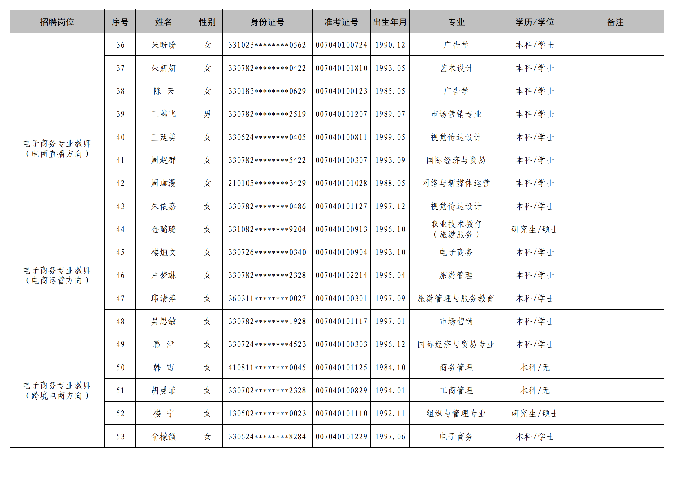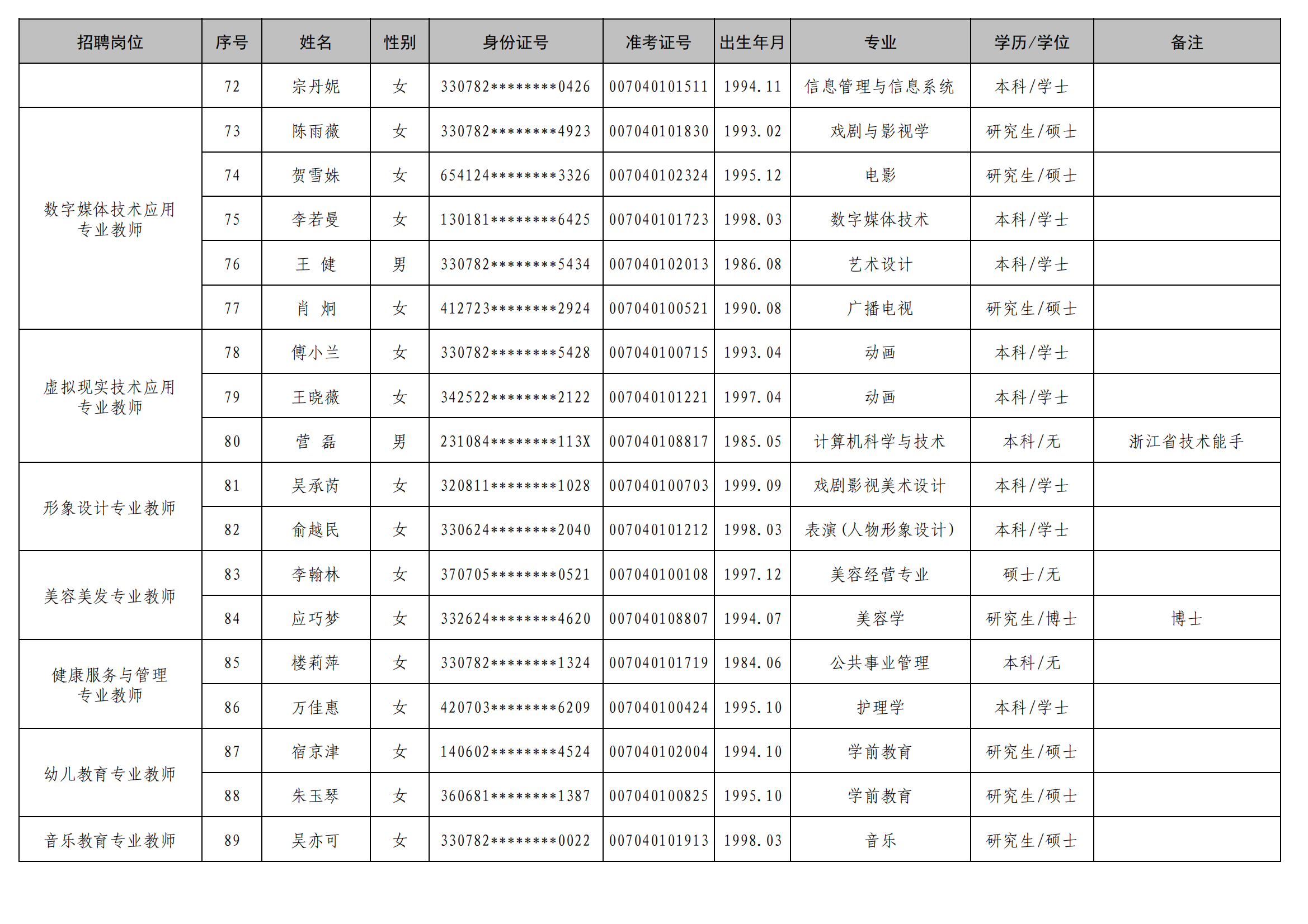 浙江省機電技師學院2023年(nián)公開(kāi)招聘遞補人(rén)員(yuán)名單