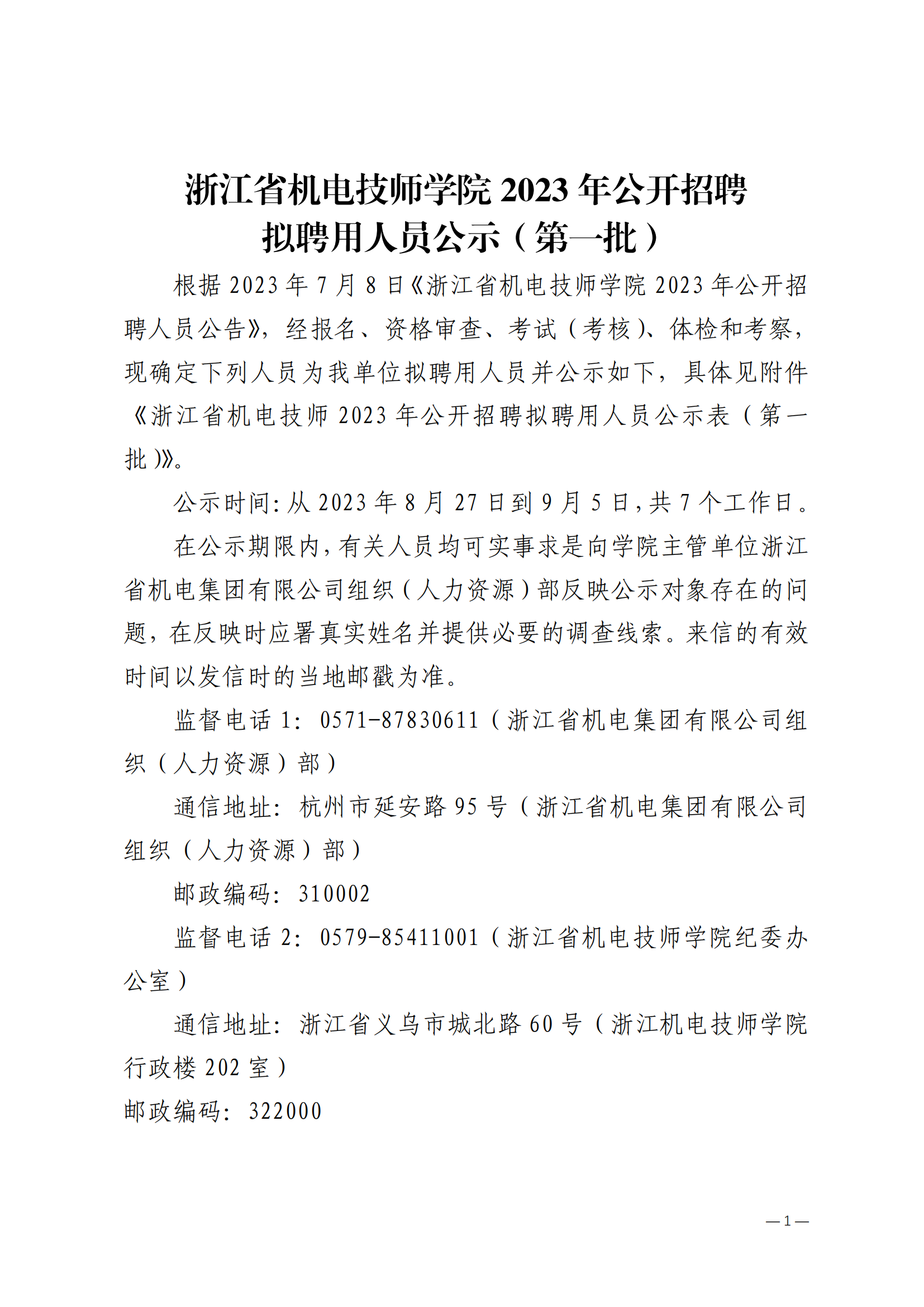 浙江省機電技師學院2023年(nián)公開(kāi)招聘拟聘用(yòng)人(rén)員(yuán)公示(第一(yī)批)