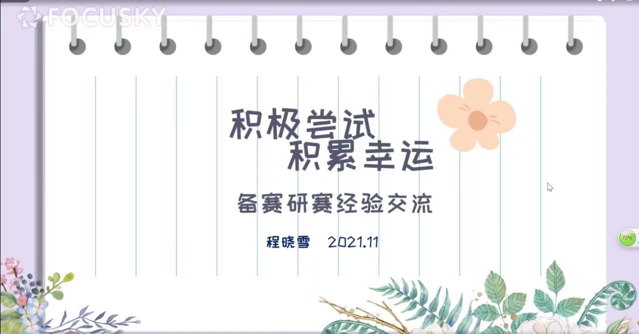 程曉雪(xuě)老(lǎo)師(shī)通(tōng)過線上(shàng)參會(huì)的(de)形式δ從(cóng)研讀(dú)政策文(wén)件(jiàn)、分(fēn)析教材學期、緊扣時(shí)政、活用(yòng)信息化(huà)平台手法等方面向大(dà)家(jiā)進行§(xíng)分(fēn)享,情景交融,內(nèi)容詳實,非常全面的(de)将自(zì)己參與相(xiàng)♥關比賽的(de)經驗和(hé)思考進行(xíng)分(fēn)享。