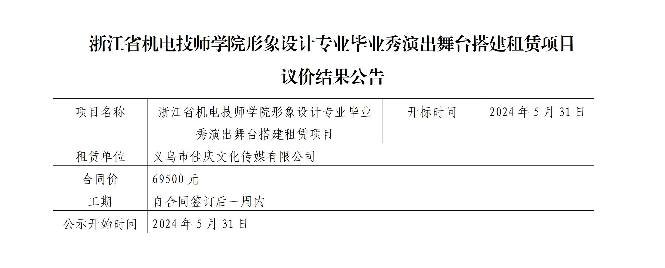 浙江省機電技師學院形象設計(jì)專業(yè)畢業(yè)秀演出舞(wǔ)台搭建租賃項目 議(yì)價結果公告
