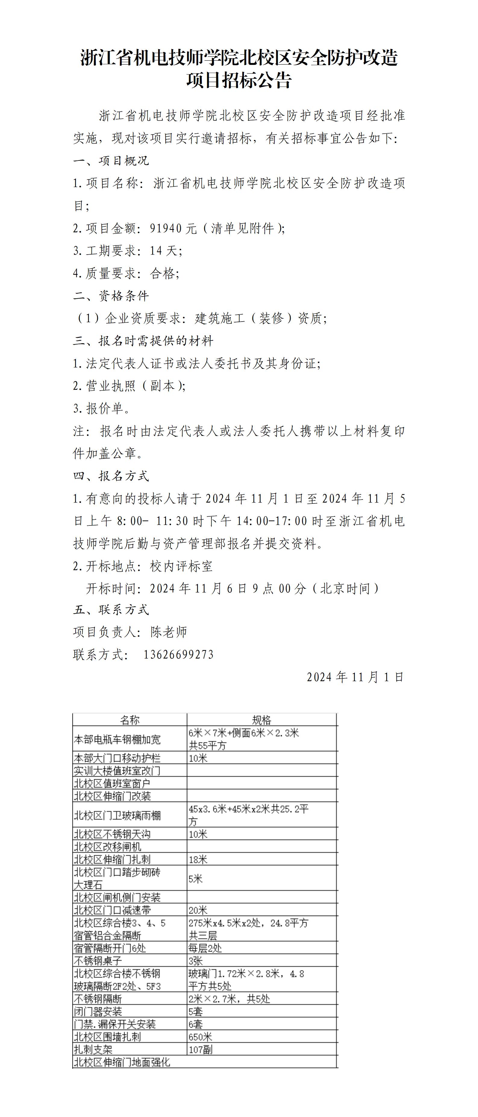 浙江省機電技師學院北(běi)校(xiào)區(qū)安全防護改造項目招标公告