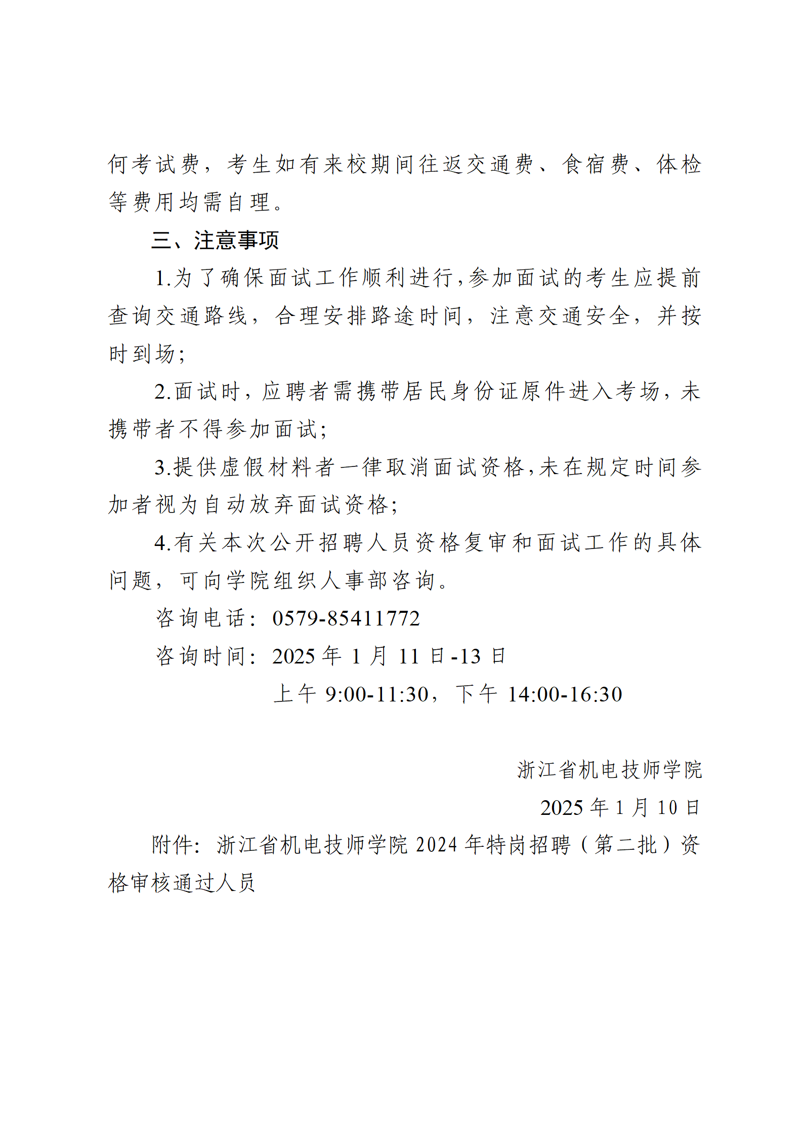 浙江省機電技師學院關于2024年(nián)第二批特崗招聘面試結果及體(tǐ)檢有(yǒu)關安排的(de)公告