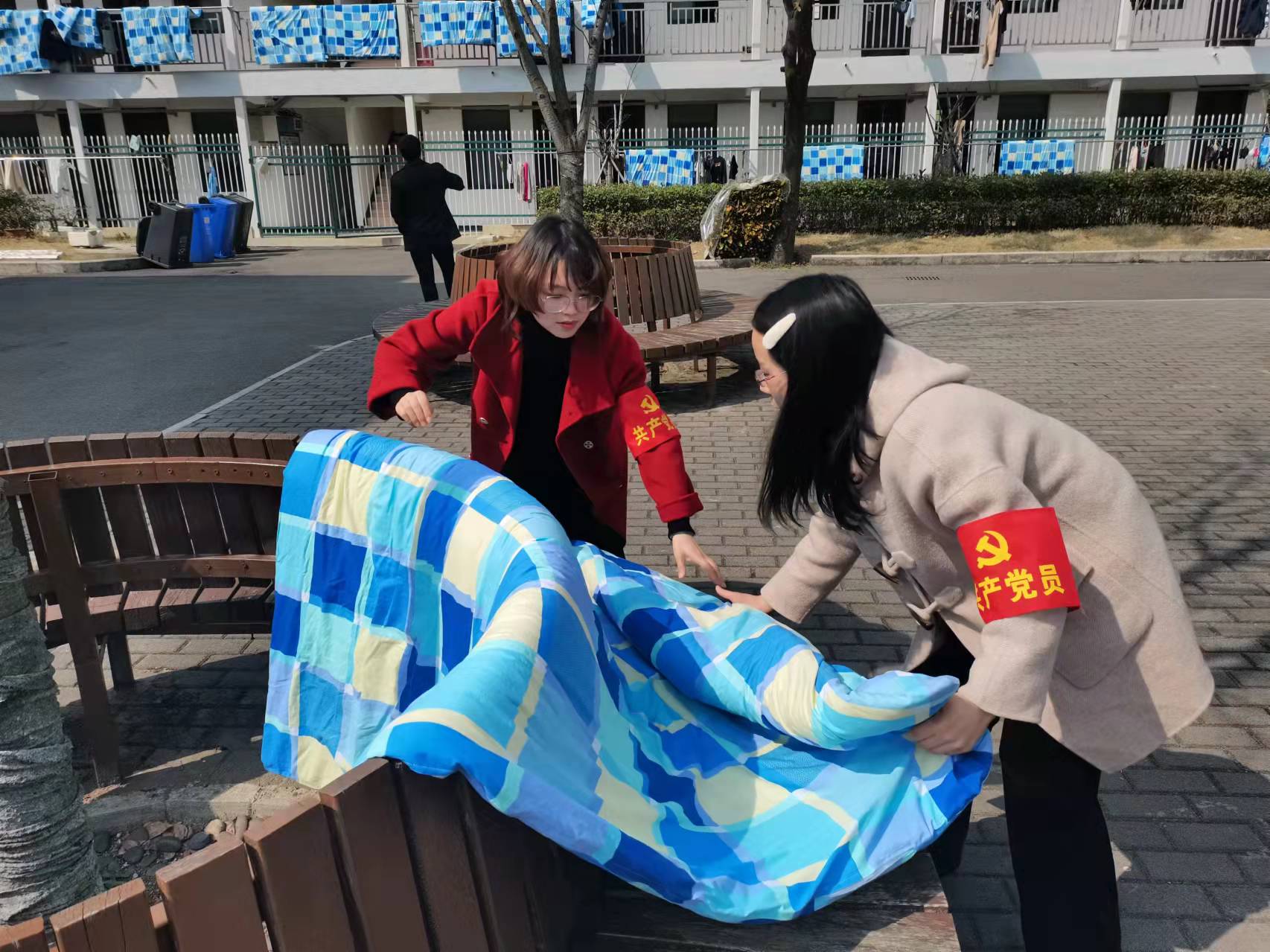 為(wèi)保持學生(shēng)曬被子(zǐ)的(de)有(yǒu)序性,學生(shēng)處根據班級、分(fēn)男(nán)女(nǚ")寝室進行(xíng)合理(lǐ)安排。同學們紛紛将自(zì)己的(de)被子(zǐ)抱出來(lái),開(kāi)始了(le)轟轟烈烈的(de)校(xiào)園曬被子( zǐ)大(dà)作(zuò)戰。為(wèi)了(le)擴大(dà)晾曬面積,黨員(yuán)教師(shī)和(hé)團員(yuán)志(zhì)願者發揮合力,"一(yī)起将實訓樓一(yī)到(dào)四層的(de)走廊欄杆都(dōu)擦幹淨,防止灰塵弄髒了(le)被子(zǐ)。黨員(yuán)教師(shī)和(hé)各班班主任們也(yě)發揮了(le)“爸(bà)媽(mā)的(de)職責”,幫助同學們晾曬好(hǎo)被子(zǐ)。同學們的(de)被子(zǐ)接受了( le)一(yī)下(xià)午的(de)日(rì)光(guāng)浴,變得(de)蓬松柔軟,充滿著(zhe)幸福的(de)味道(dào),晚上(shàng)蓋著(zhe)®一(yī)定比春光(guāng)更暖。