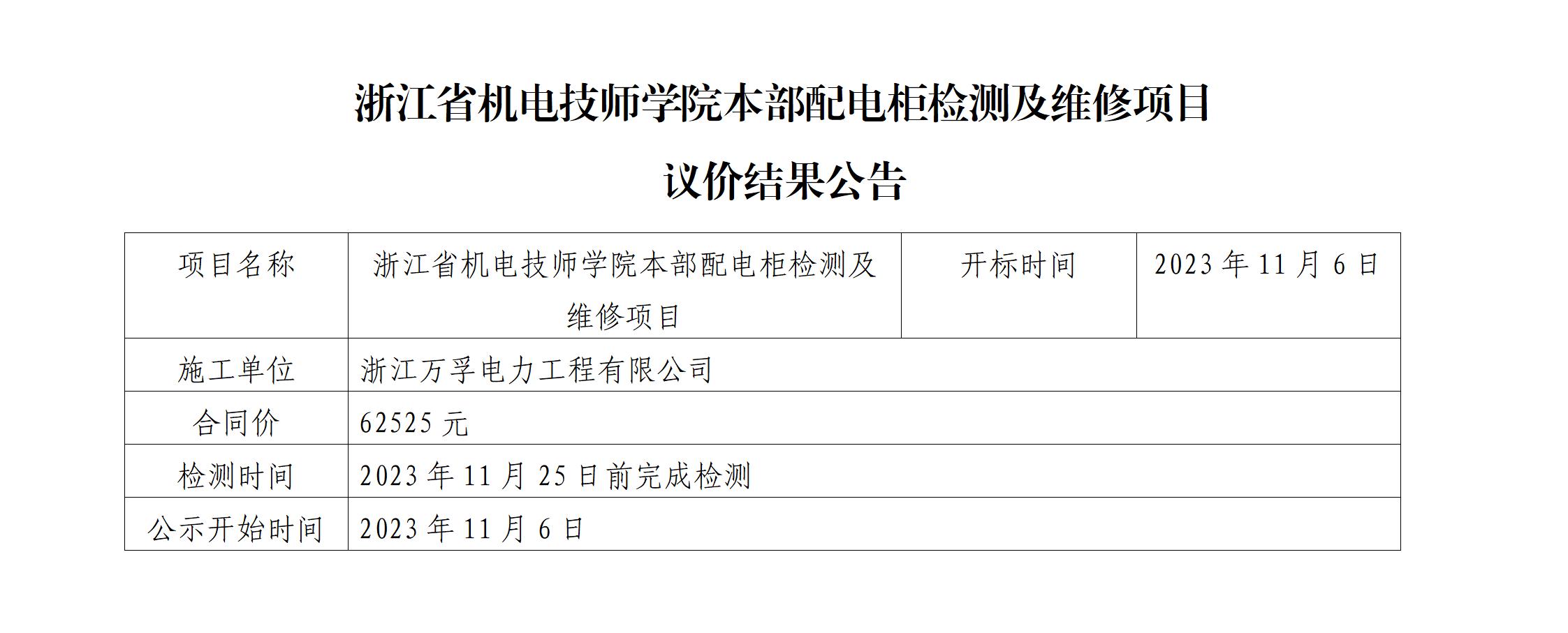浙江省機電技師學院本部配電(diàn)櫃檢測及維修項目議(yì)價結果公告