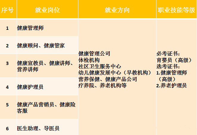 人(rén)體(tǐ)形态與結構、臨床醫(yī)學概要(yào)、健康評估、慢(màn)性病管理(lǐ)學、健康管理(lǐ)師(shī)基礎知(zhī)識、健康管理(lǐ)師(shī←)實踐與技(jì)能(néng)、育嬰師(shī)理(lǐ)論與技(jì)能(néng)、基礎護理(lǐ)α學、養老(lǎo)護理(lǐ)學、健康營養學、健康教育與促進、管理(lǐ)學、健康服務與營銷、演講與溝通(tōng)、心理(lǐ)與健康、運動保健學、中醫(βyī)養生(shēng)學等。