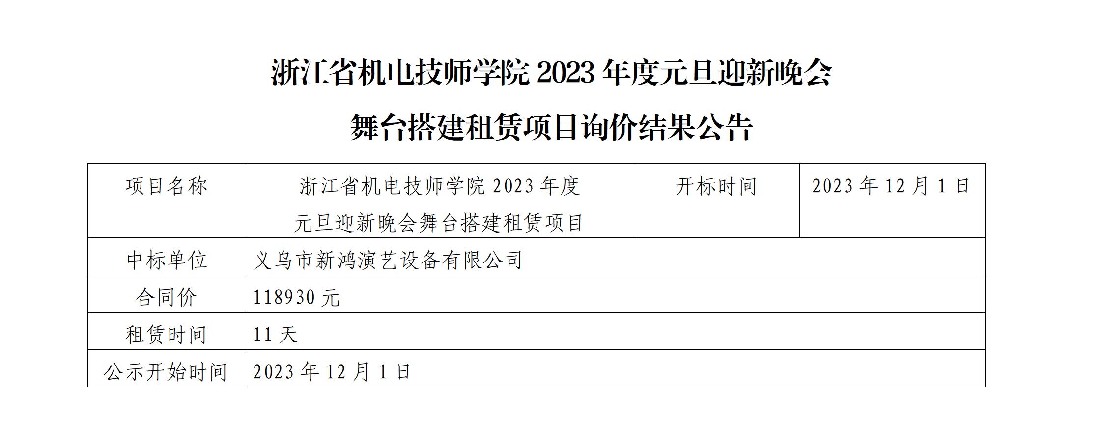 浙江省機電技師學院2023年(nián)度元旦迎新晚會(huì) 舞(wǔ)台搭建租賃項目詢價結果公告