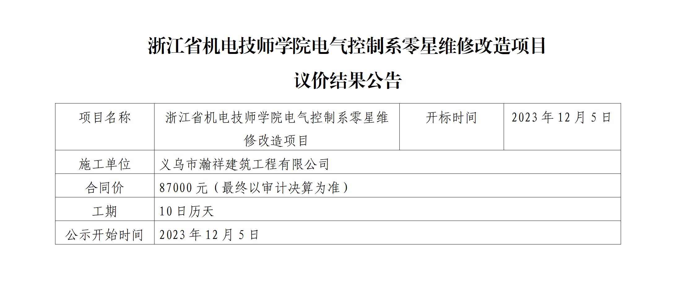 浙江省機電技師學院電(diàn)氣控制(zhì)系零星維修改造項目 議(yì)價結果公告