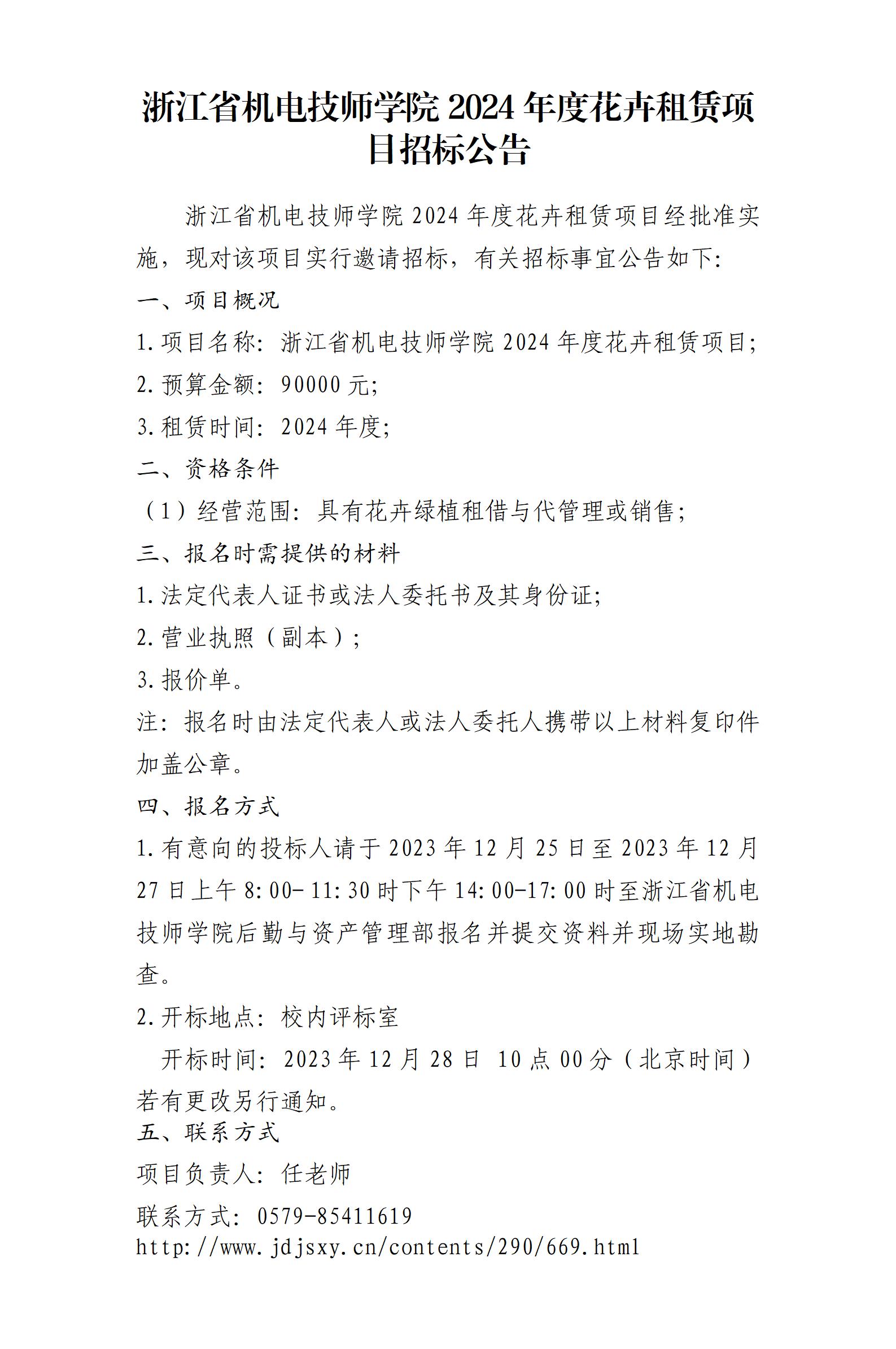 浙江省機電技師學院2024年(nián)度花(huā)卉租賃項目招标公告