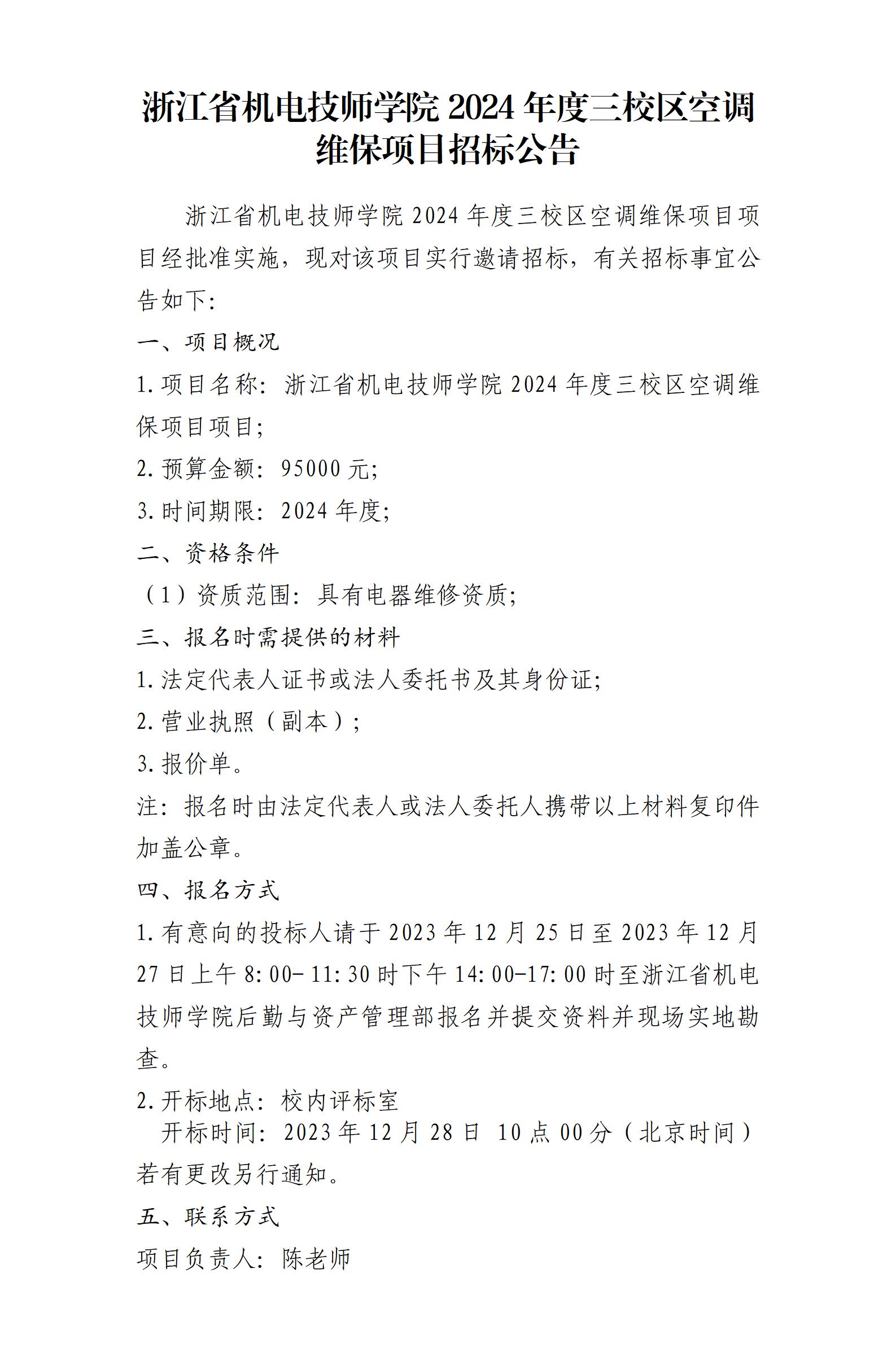 浙江省機電技師學院2024年(nián)度三校(xiào)區(qū)空(kōng)調維保項目招标公告