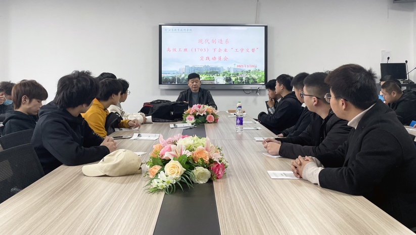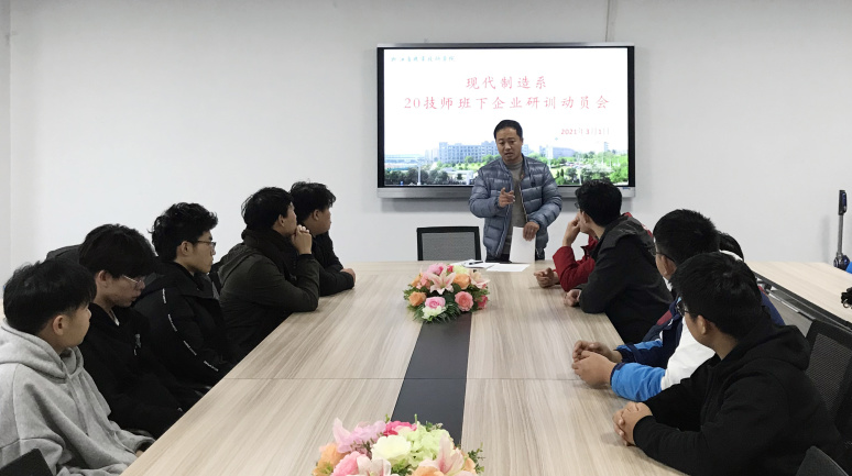 3月(yuè),現(xiàn)代制(zhì)造系20技(jì)師(shī)班下(xià)企業(yè)研訓動員(yuán)會(huì)、高(gāo)級工(gōng)班(1703)下(xià)企業(yè)“工(gōng)學交替”實踐動員(yuán)會(huì)于新大(dà)樓二樓召開(kāi)。系主任孫傳提出了(le)殷切期望,希望同學們把學生(shēng)角色σ與企業(yè)員(yuán)工(gōng)角色完美(měi)結合,學習(xí)企業(yè)文(wén)化(h✘uà)、學習(xí)專業(yè)技(jì)能(néng),提升個(gè)人(rén)動手能(néng)力、團隊合作(zuò)能(néng)力、綜合素質能(nén♥g)力。