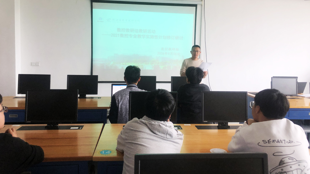 樓文(wén)剛老(lǎo)師(shī)圍繞2021數(shù)控專業(yè±)實施性教學計(jì)劃的(de)修訂與組內(nèi)其他(tā)教師(shī)展開(kāi)討(tǎo)論÷。組長(cháng)施尚軍對(duì)實施性教學計(jì)劃修訂意見(jiàn)進行(xíng)彙總整理(lǐ)←,并布置數(shù)控綜合項目備賽訓練計(jì)劃、技(jì)能(néng)鑒定、技(jì)師(shī)選拔上(shàng)報(b☆ào)等工(gōng)作(zuò)任務。