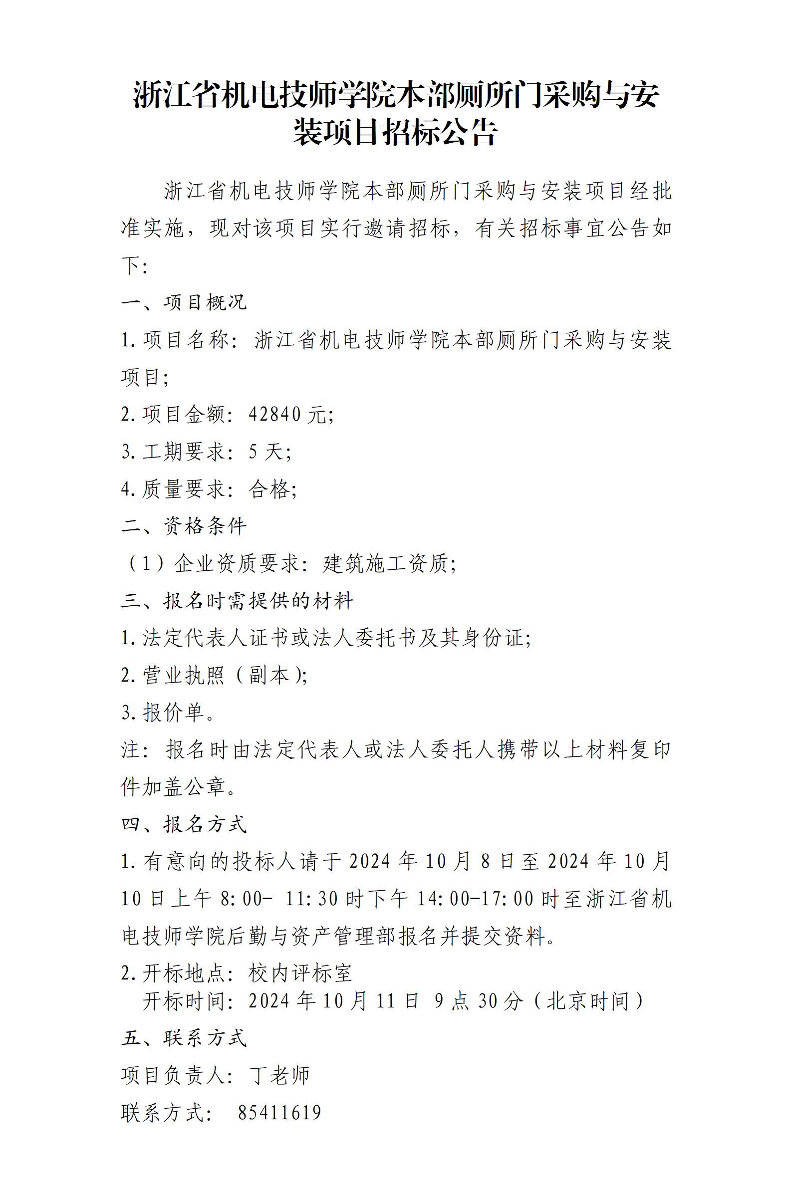 浙江省機電技師學院本部廁所門(mén)采購(gòu)與安裝項目招标公告