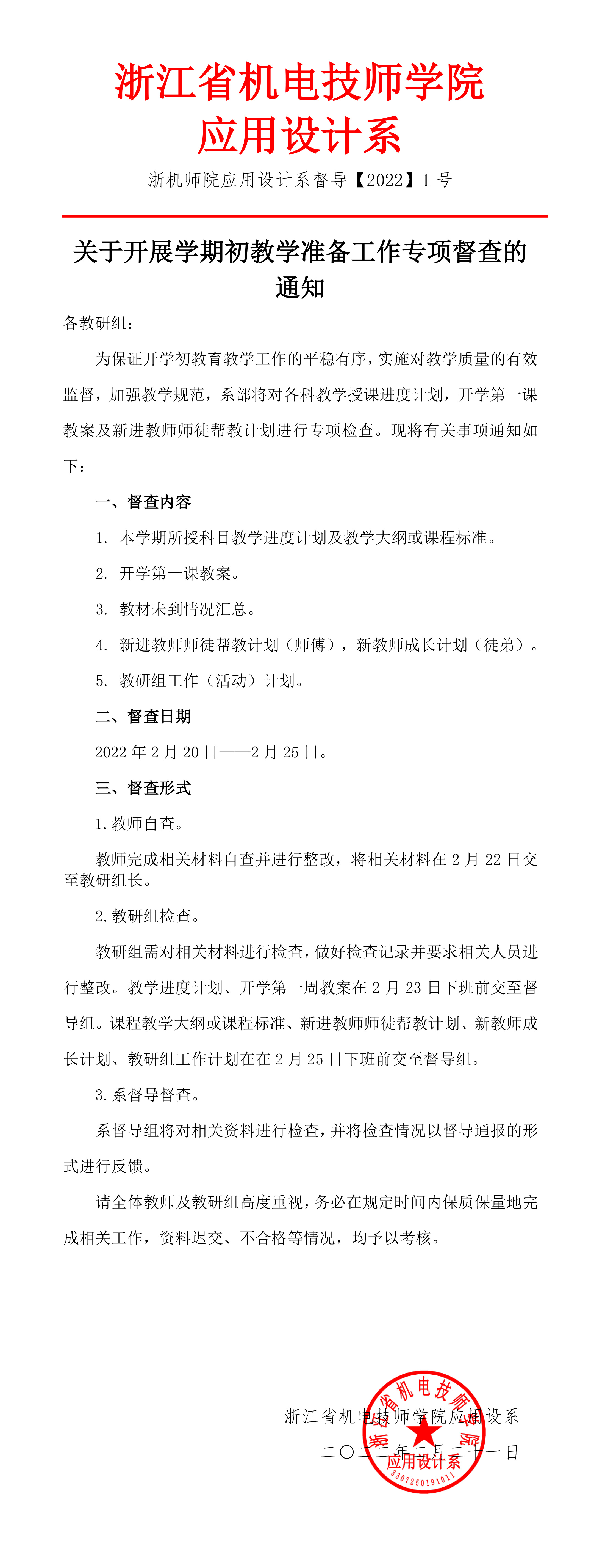 關于開(kāi)展學期初教學準備工(gōng)作(zuò)專項督查的(de)通(tōng)知(zhī)